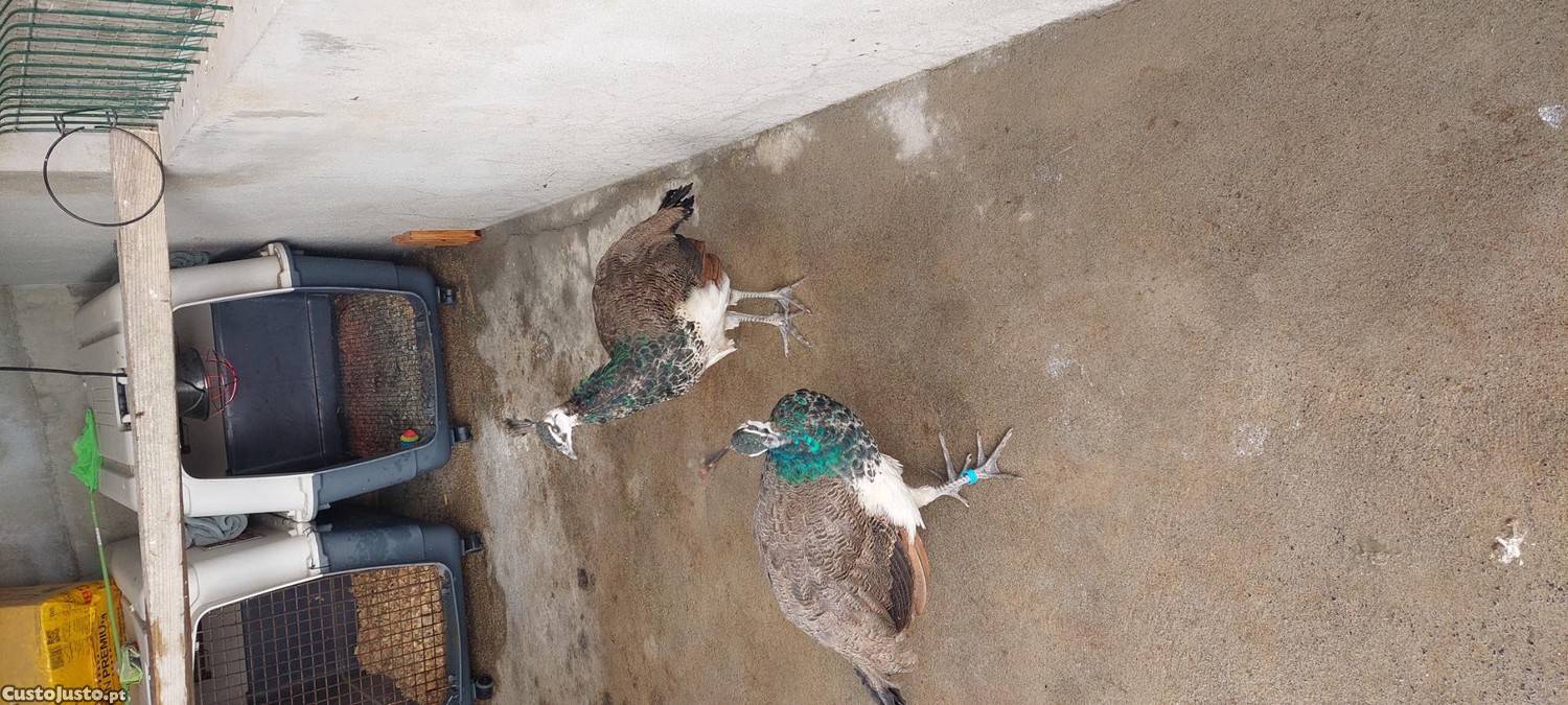 Pêssegos de 3 e 4 meses e 3 adultos, 2 galinhas. Uma marca, 3 anos, variedade India Blues, 70 euros cada, 3 adultos, 600 euros todos, 3 anos