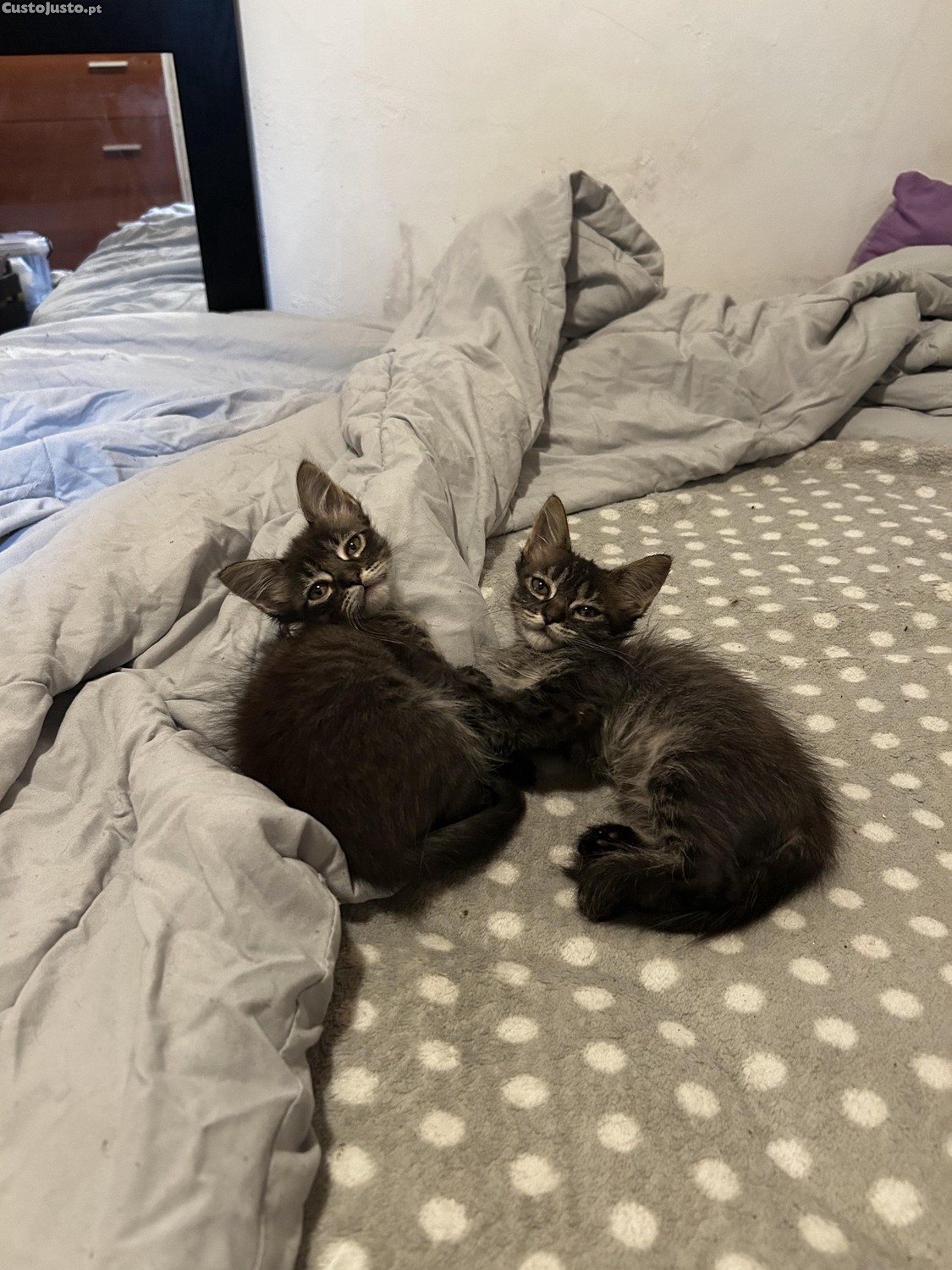 Uma delas adora imenso carinho e não tem medo de nada e a outra é muito medrosa.
