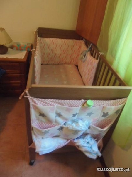 Vendo contorno de berço, com estampa de folhas em tons de rosa e uma capa de endredon para berço com estampa de koalas, também em rosa, e ambos os artigos são da La Redoute.