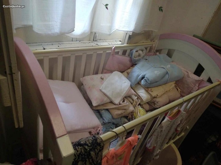 Berço da marca "Trama", com colchão, resguardos, e edredon. Praticamente novo.