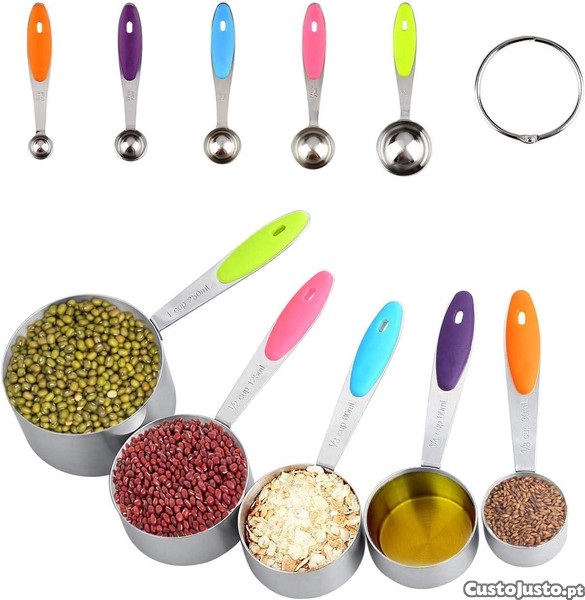 Preço: 20 €10 peças canecas medidoras colheres de medição aço inoxidável 18/8