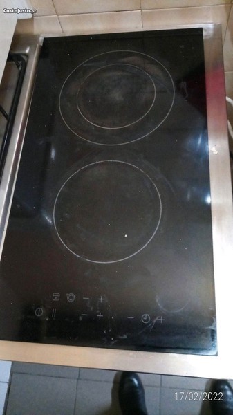 Placa de vitro cerâmica, com 2 bocas médias, podendo 1 aumentar a base de calor e ficar como uma boca grande.
