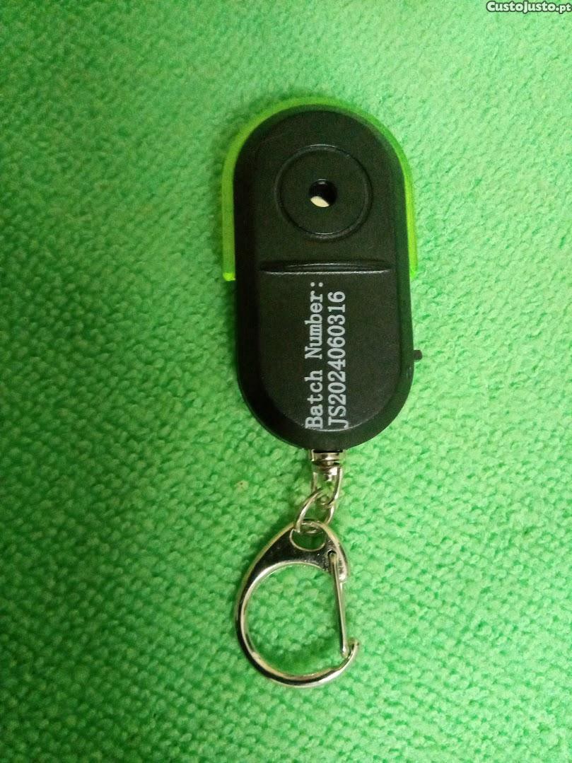 Porta-chaves sonoro para distraídos. Para aqueles que nunca encontram as chaves. Basta um assobio e o porta-chaves apita e pisca. Distância até 8 metros.