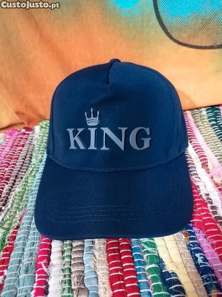 Boné azul escuro com a palavra 'KING' e uma coroa em relevo.