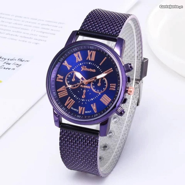 Marca: Geneva; Profundidade de Resistência a Água: Não à prova d ' água; Material do Invólucro: Plástico; Fecho: Fivelas; Movimento: Analógico; Largura de banda: 23mm; Diâmetro Dial: 40mm; Material da Faixa: Plutônio; Janela Dial tipo de Material: Vidro; Comprimento da Pulseira: 24cm.