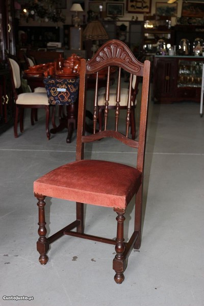 Cadeira em Madeira com Tampo em Tecido Aveludado