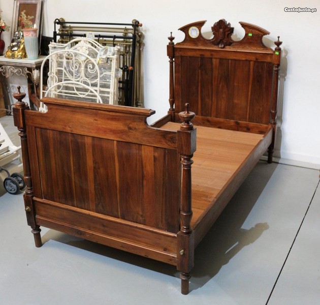 Cama de Solteiro Antiga em Madeira Trabalhada