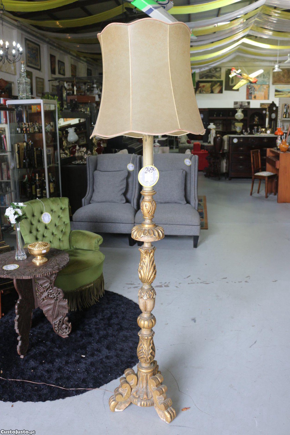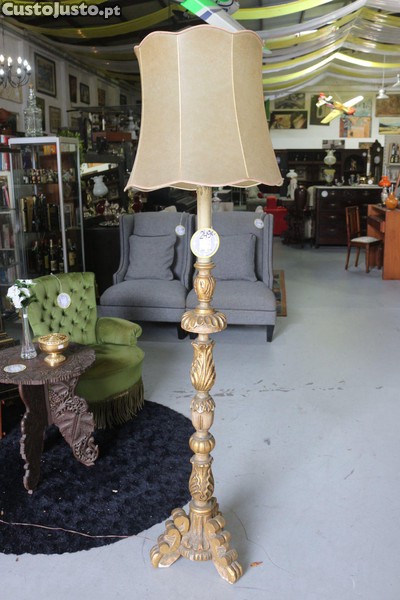 Preço: 249 €Candeeiro de Pé em Madeira Entalhada com Abajur em Pele