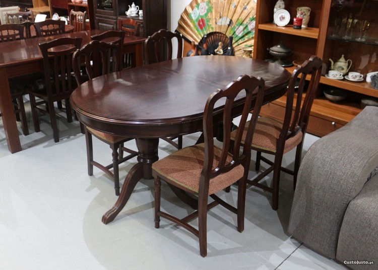 Conjunto de Mesa Extensível em Madeira + 4 Cadeiras