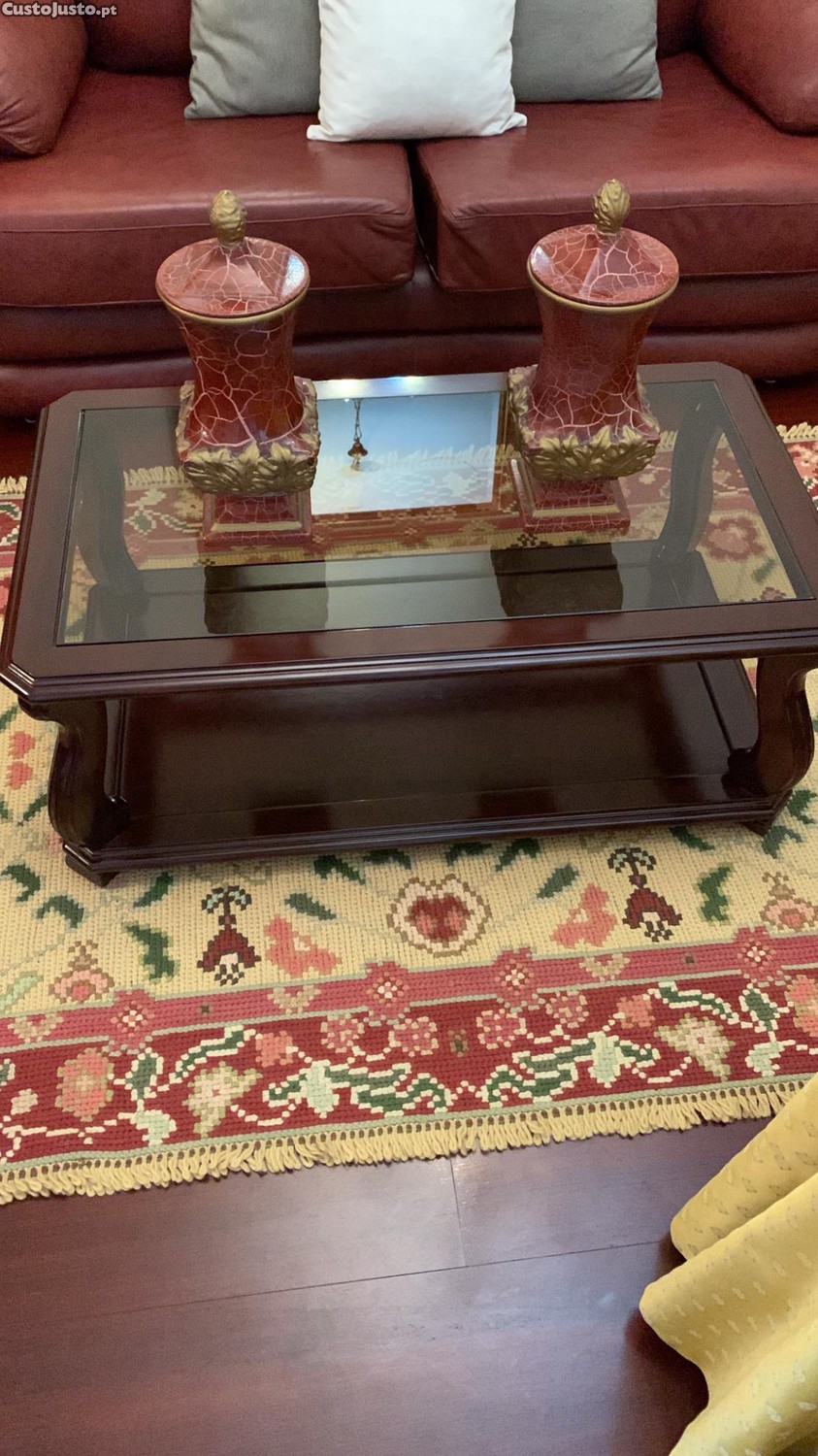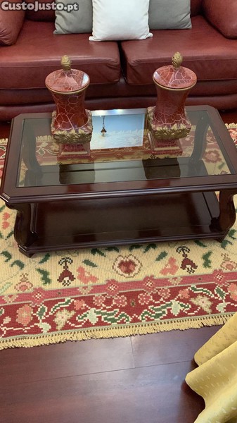 Bonita mesa com tampo em vidro madeira maciça . Ótimo estado