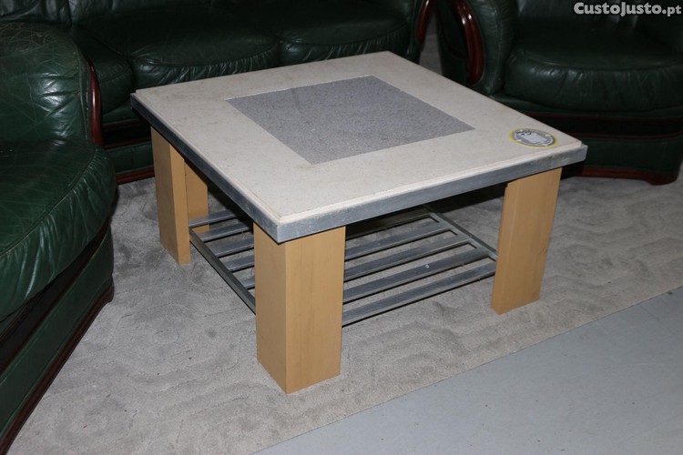 Preço: 75 €Mesa de Centro com Tampo em Pedra de Lavoura e Mármore