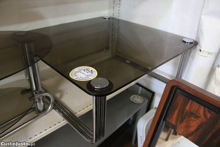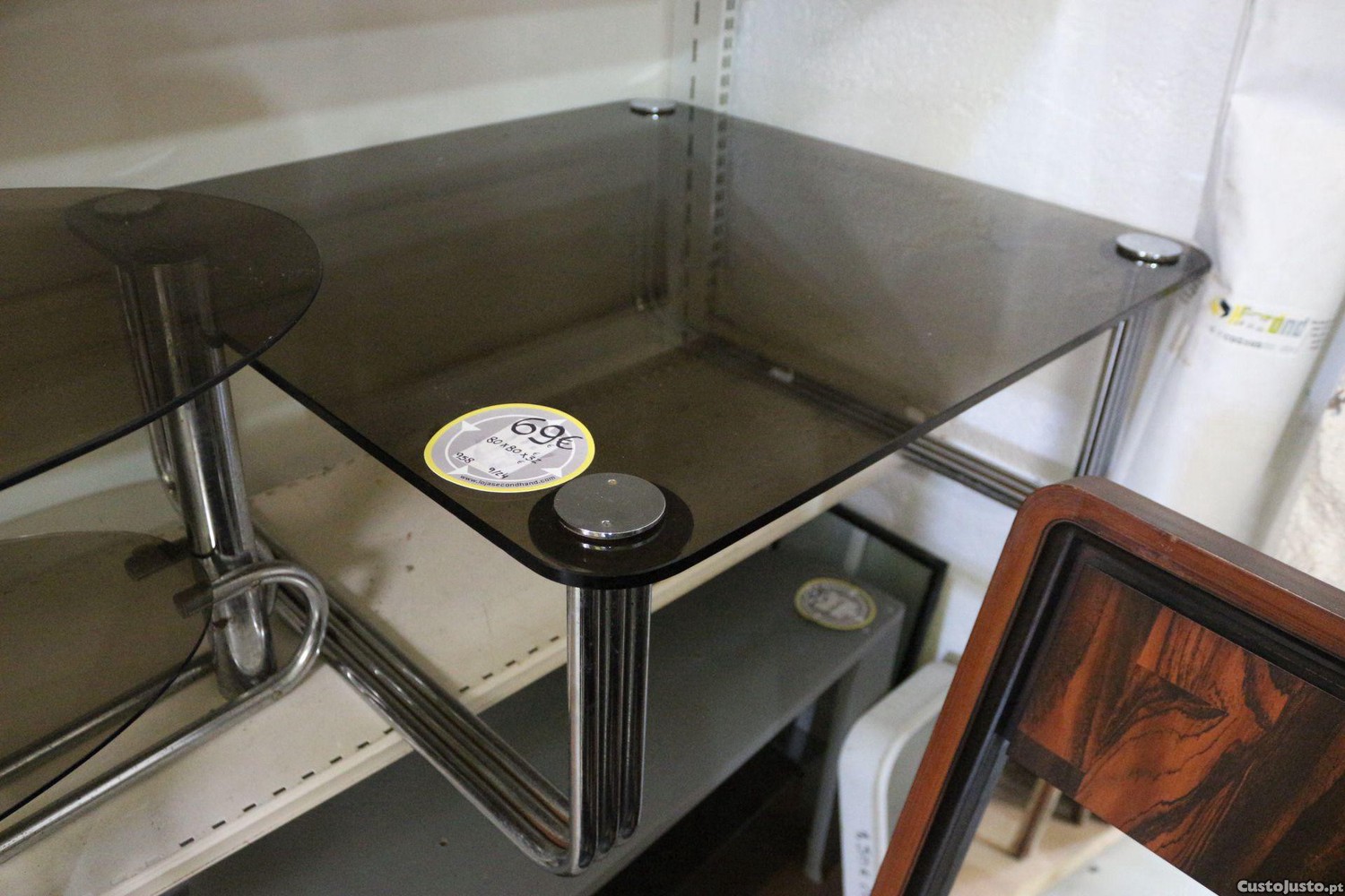 Mesa de Centro com Tampo em Vidro com Pés em Metal