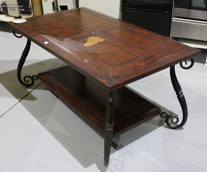 Preço: 165 €Mesa de Centro em Madeira, Ferro e Tampo em Pele