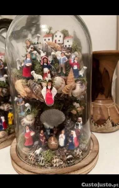 Presépio de lapinha feito de raiz, com todos os elementos decorativos elaborados e pintados à mão. 15 cm de altura.