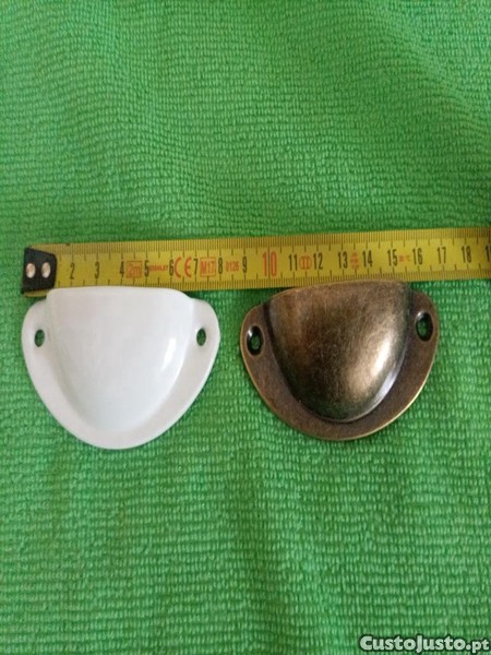 Puxadores de gavetas ou portas de armário. De liga de latão. Medidas numa das fotos. 2 euros cada ou 3 o par.