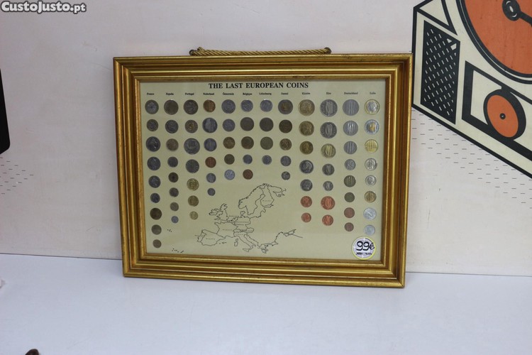 Preço: 99 €Quadro com Moldura em Madeira "The Last European Coins"