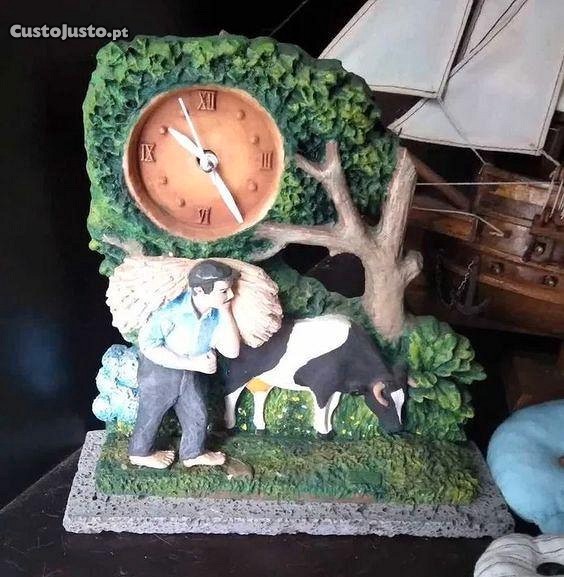 Relógio de mesa. Rústico Açores, com base de pedra de basalto. Novo. Mede 25 centímetros de comprimento e 30 de altura. Faço envios, embora o preço não inclua os portes.