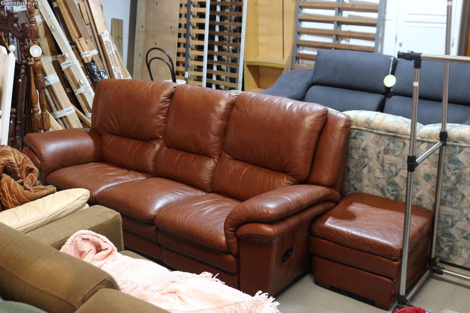 Preço: 159 €Sofá de 3 Lugares Relax em Pele + Puff