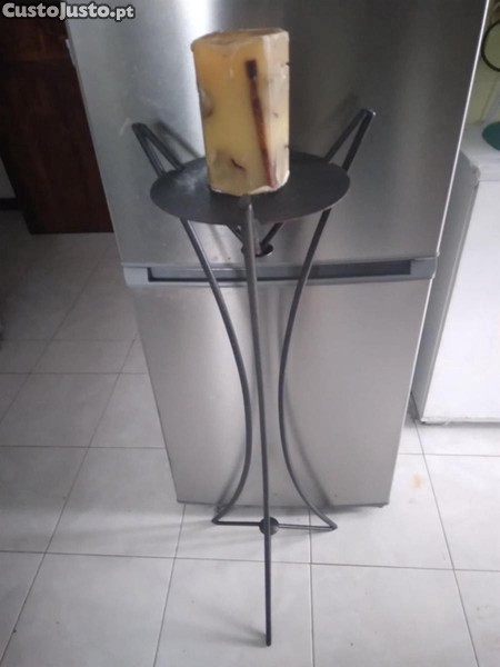 Suporte rústico, de ferro, para velas. Mede 1 metro de altura e a base onde assenta a vela mede 35 centimetros. Inclui a vela.