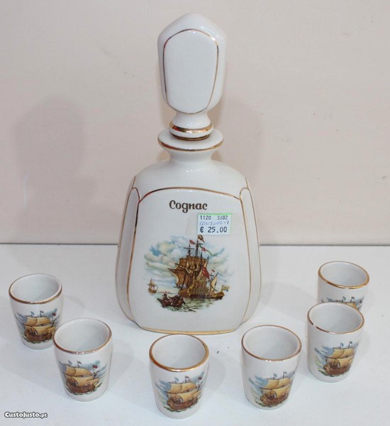 Garrafa Cognac + 6 Copos em Loiça P.B Alcobaça