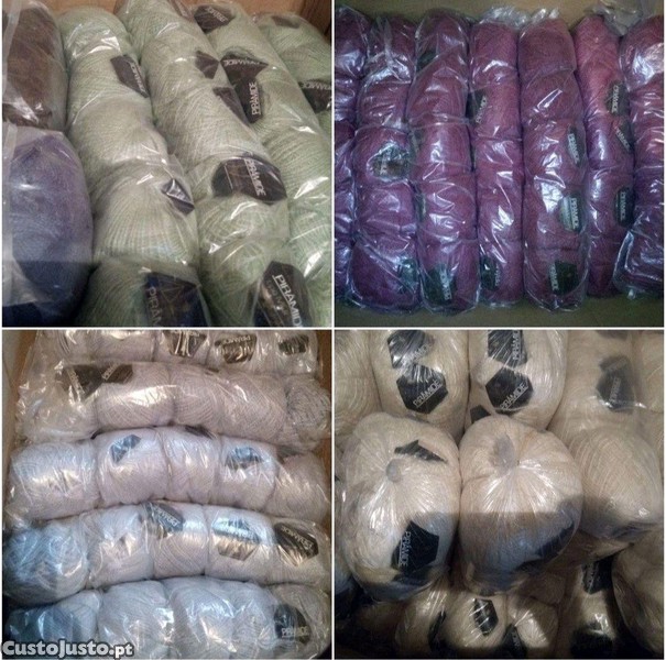 Lãs em sacos de 10 novelos de 50gr da mesma cor, novas. O saco fica com 500gr (50gr cada novelo). Tenho disponível varias cores. Vendo os novelos como estão nas embalagens.