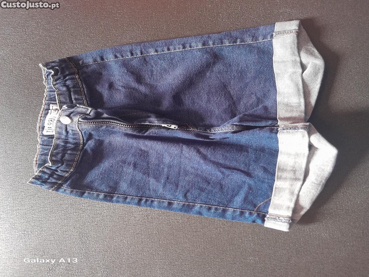 Calção de ganga azul de menina, tamanho 11-12, veste muito bem, muito confortável