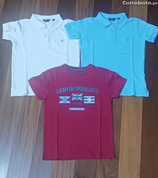 Conjunto de 2 polos da marca Gant e uma t- shirt da marca lion of porches para criança.