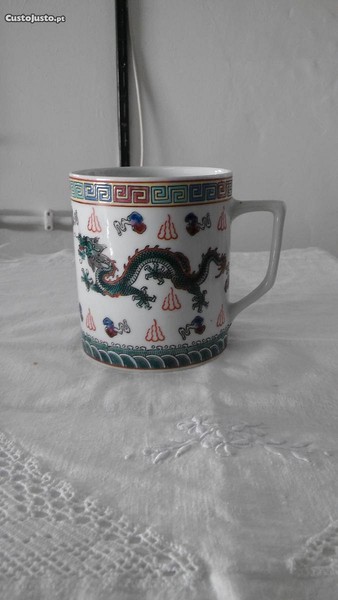 Caneca Chinesa pintada à mão com 10cm de altura e diâmetro 8,5cm
