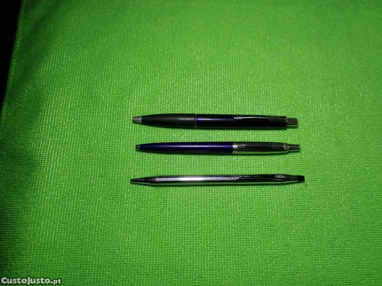 Esferográficas Parker e Cross. Valor colocado é para todas. Individualmente: Parker 10 cada e Cross 15.
