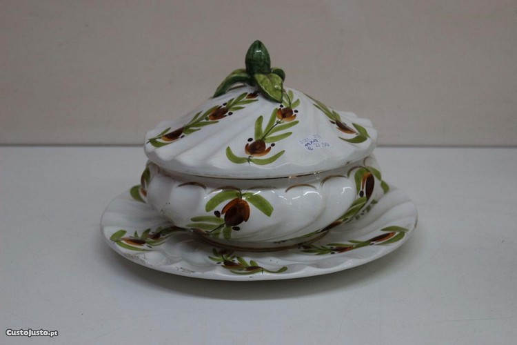 Terrina Antiga com Prato Pintada à Mão de Alcobaça