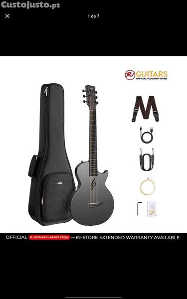 Vendo guitarra em fibra de carbono. Com efeitos e Bluetooth incorporados. A guitarra vai com todos os extras demonstrados na primeira imagem. Vendo por falta de uso. Valor negociável.
