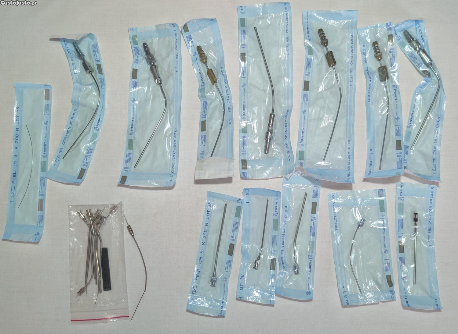 Vende-se conjunto de cânulas dentárias em aço inoxidável, para uso em aspiração cirúrgica e irrigação (endodontia, implantologia, cirurgia oral, etc.).