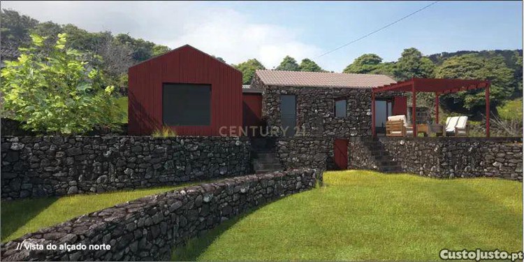 O terreno envolvente, com 875 m², é ideal para desfrutar da tranquilidade da região e permite várias possibilidades de aproveitamento. A moradia inclui um projeto de reabilitação que transforma o espaço num imóvel ainda mais moderno e funcional. Este projeto contempla dois quartos, uma sala de estar com cozinha em open space, duas casas de banho, arrecadação na cave e um magnífico terraço com vistas deslumbrantes para o Atlântico e a Ilha de São Jorge.