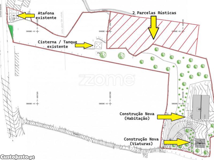 Com acesso direto pela Estrada Regional, o terreno beneficia ainda de uma servidão que permite chegar à sua cota mais elevada, onde se desfruta de uma vista panorâmica soberba sobre o Atlântico. É neste ponto estratégico que foi concebido um projeto arquitetónico de inspiração tradicional, cujo pedido de informação prévia mereceu parecer camarário favorável, uma vez que valoriza as características locais e integra harmoniosamente a construção na envolvente natural.
