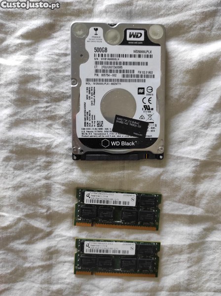 Disco SLIM 500GB SATA III 7200RPM + memorias ram - para Portatil - testado e funcionar perfeitamente