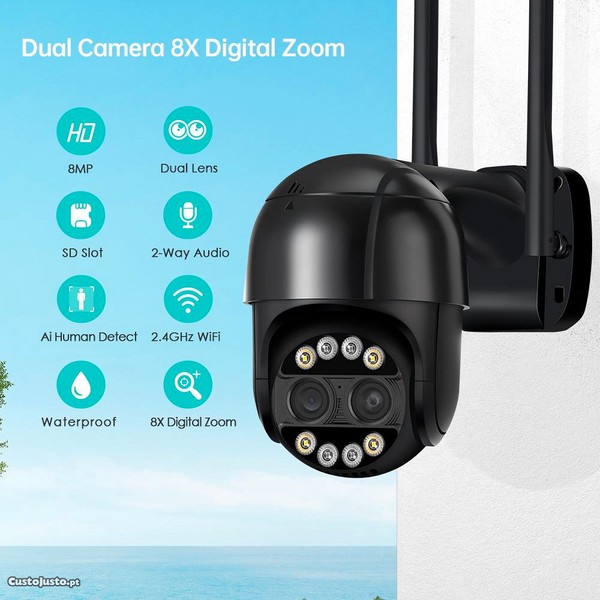 Preço: 40 €BESDER-PTZ Câmera IP com Dual-Lens, Câmera CCTV Vigilância WiFi, 8x Zoom, 4K, ICSEE AP