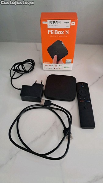 Vem com tudo de origem, caixa, box, cabo elétrico, cabo HDMI e controlo remoto.
