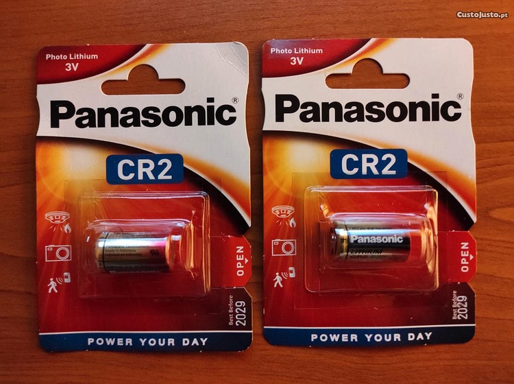 Estou a vender duas pilhas Panasonic CR2 de 3V, com validade até 2029.