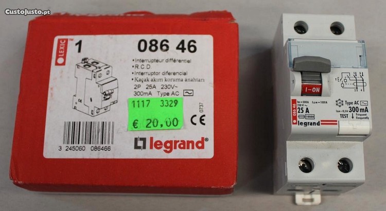 Preço: 20 €Interruptor Diferencial Legrand 25A ( NOVO )