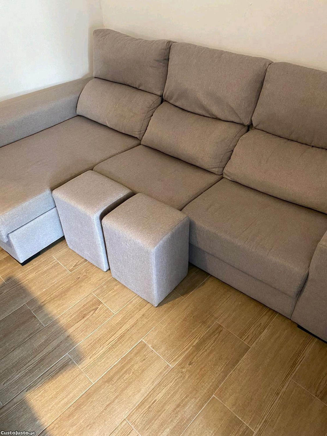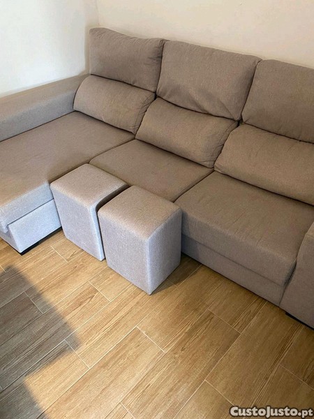 Preço: 400 €Sofá retrátil com arrumação + 2 puffs