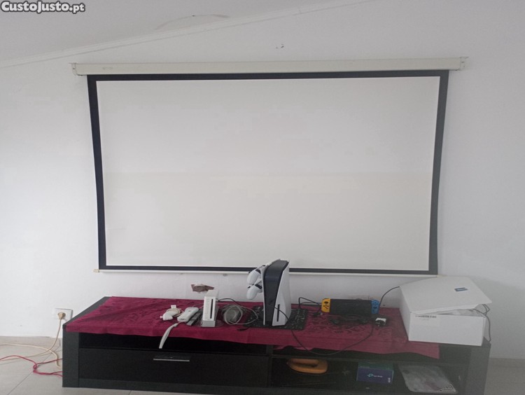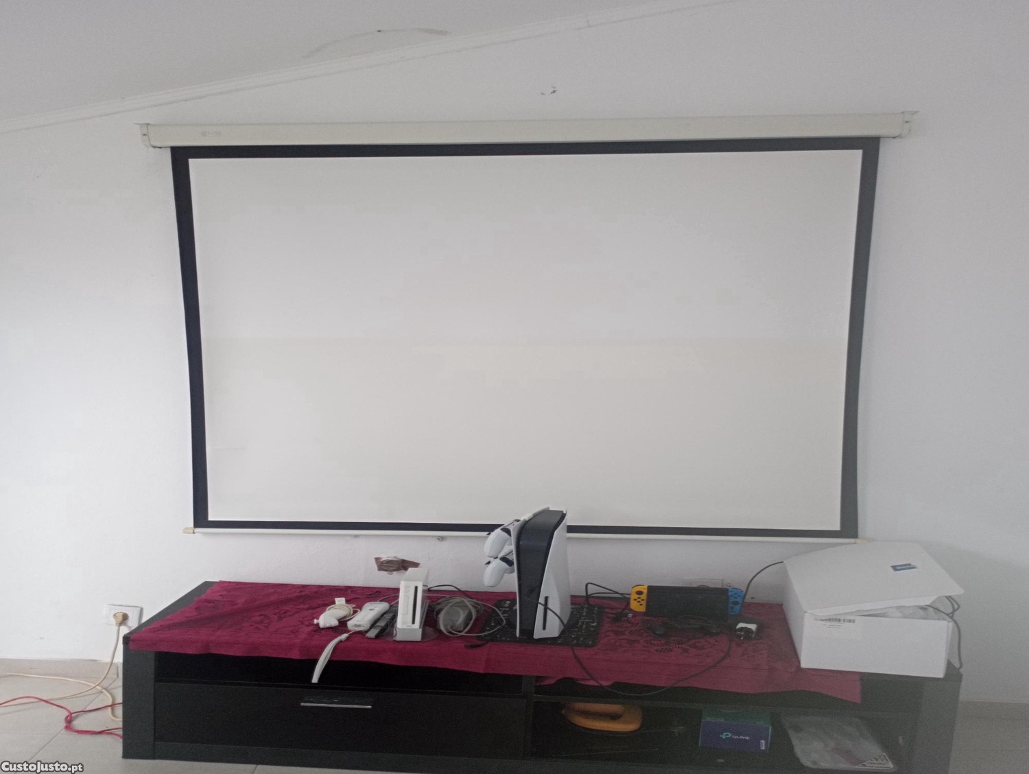 Tela usada com caixa a trabalhar bem e projector não è dos bons mas da para ver alguma coisa motivo comprei mais recente posso mandar fotos e vídeos mensagem privada
