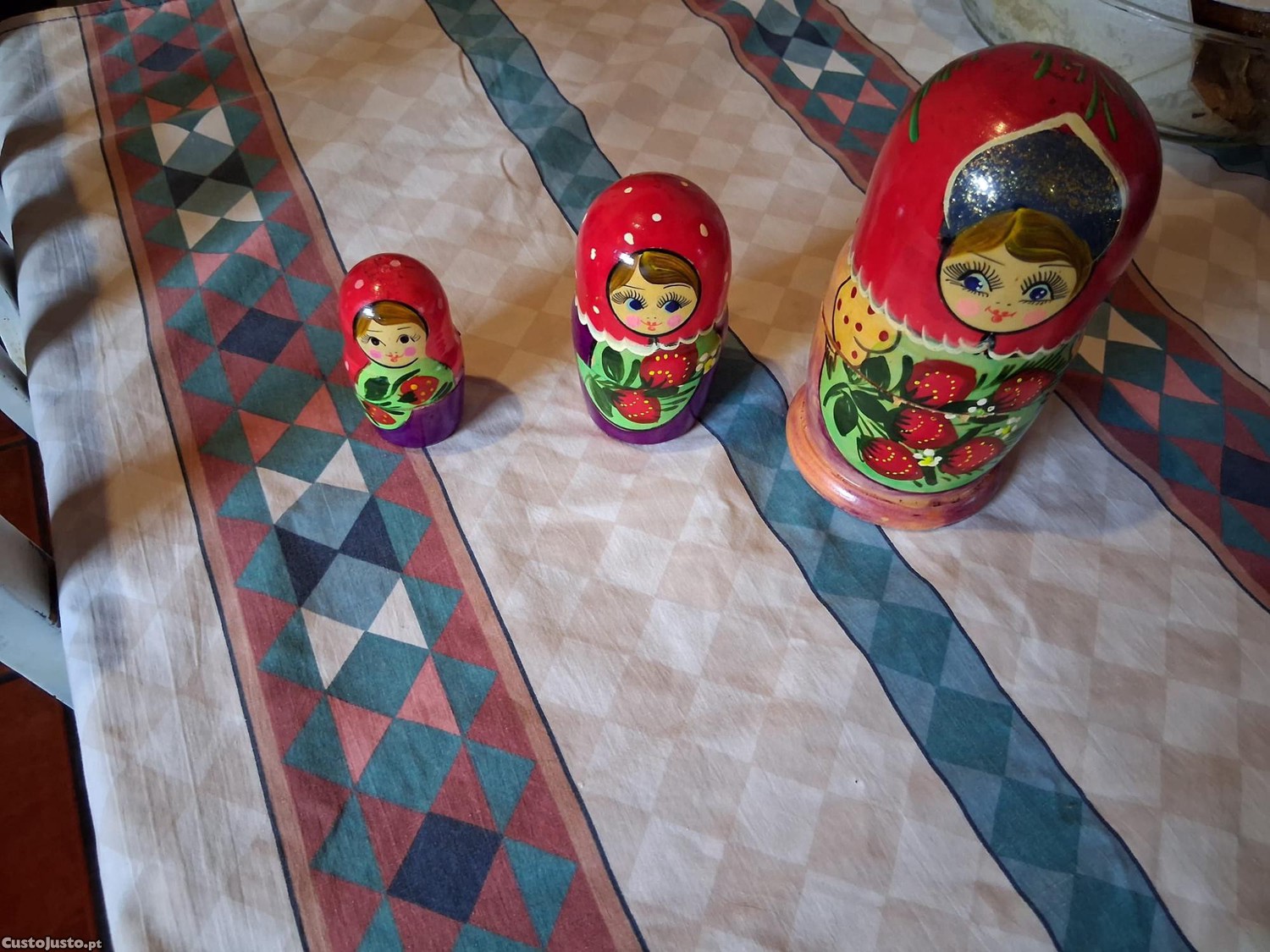 Bonecos por 7 coisa meter a vela por 5 cada, anjo por 5 frigideiras antigas de ferro por 20 as duas
