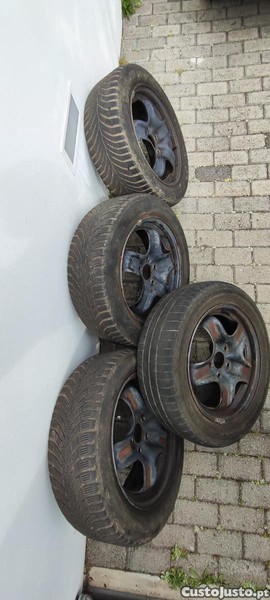 Vendo 4 jantes de ferro 16" com pneus na medida 205 55 R16, ainda com piso. Junto vão 3 tampões Renault.