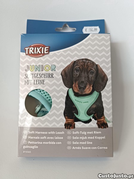 Peitoral com trela para cão júnior, cores verde e violeta
