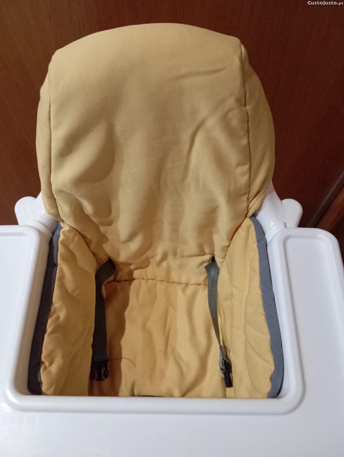 2 cadeiras para bebé, ambas com cinto e tabuleiro e uma com forra/almofada de aconchego