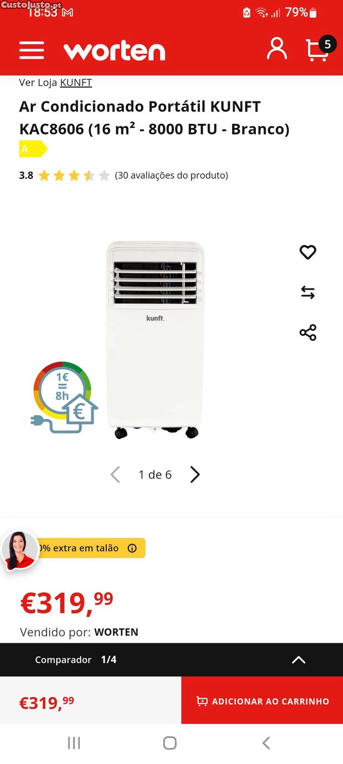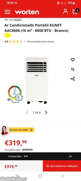 Vendo ar condicionado Portátil Kunft 8000 btu novo, sem uso com kit instalação