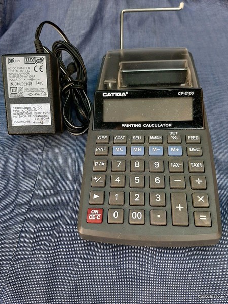 Preço: 10 €Calculadora com rolo a pilhas e corrente
