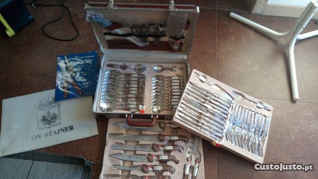 Faqueiro grande e completo, para serviços normal e/ou churrasco. De marca italiana, custa 450euros novo.