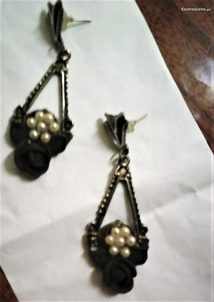 Brincos com 7 pérolas de artesanato brasileiro, brancas, da minha esposa com pouco uso.