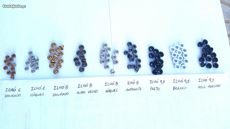 Também ilhós pintados nas cores: Preto; Branco; Azul Marinho.